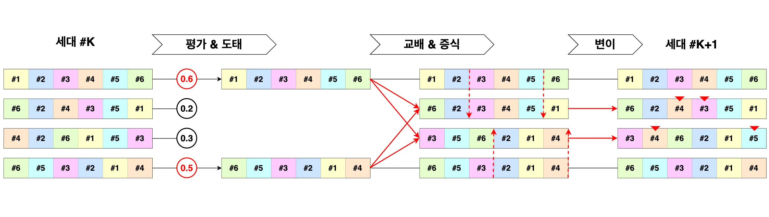 이 유전 알고리즘은 다음 그림과 같은 컨셉을 가집니다.