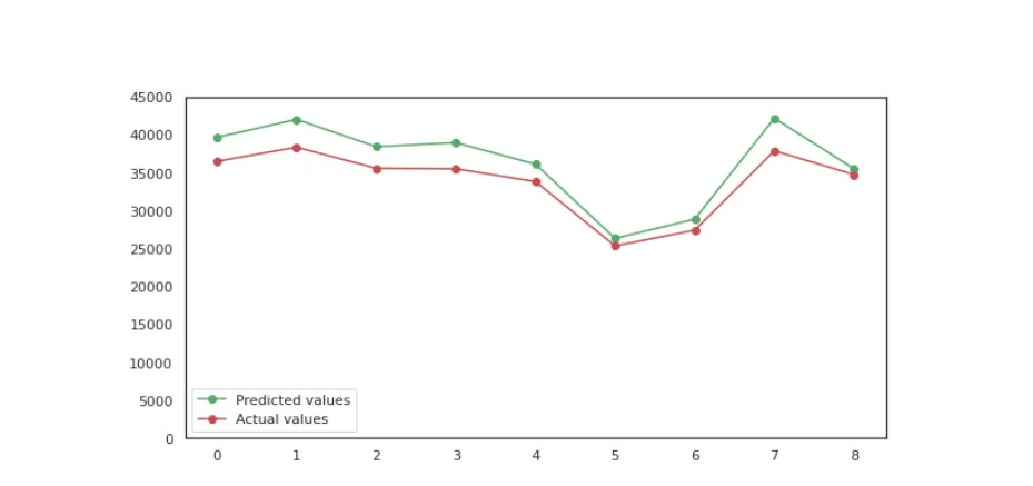 위 그래프의 x축은 날짜, y축은 해당 날짜에 생성된 바구니 수입니다 (* 보안을 위해 임의의 연산을 수행하였음). 초록 선이 추정된 바구니 수인데, 빨간 선(실제 바구니 수)과 큰 차이가 없는 데다 변동 또한 잘 포착하고 있음을 알 수 있습니다.