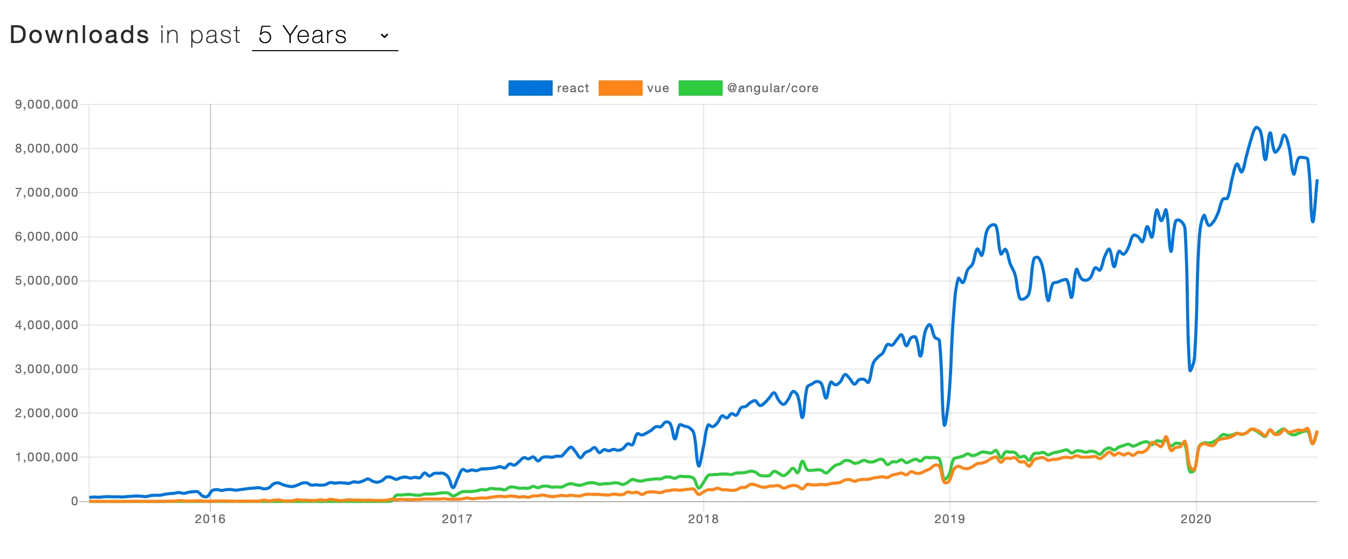 https://www.npmtrends.com/react-vs-vue-vs-@angular/core